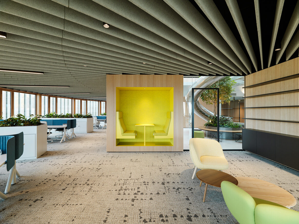Wenn Sie sich schon mal gefragt haben, wo Schnuller, Milchflaschen und ergonomische Baby-Beißringe entwickelt und geplant werden, dann finden Sie die Antwort in diesem Projekt: Im burgenländischen Großhöflein, nur wenige Kilometer vom bisherigen Laborstandort entfernt, errichtete die MAM Health & Innovation GmbH gemeinsam mit Innocad Architektur ihr neues, rund 4.500 Quadratmeter große Kompetenzzentrum. Das Gebäude ist Resultat eines Prozesses, den das Wiener Consulting- Unternehmen MOO. C. O. N. von der Initiierungsphase über den zweistufigen, geladenen Architekturwettbewerbs bis hin zur Übergabe, begleitete. Es umfasst drei tortenartige Zylinder, die ineinandergreifen und die Topografie des Hügels geschickt zur Belichtung und räumlichen Organisation nutzen. „In die runde Form“, sagt Norbert Polatschek, technischer Leiter bei MAM, Bereich Research and Development, „haben wir uns auf Anhieb verliebt. Schließlich sind auch Babys rund und nicht eckig.“ Im Inneren bietet das hochwertig ausgestatte Bürogeb.ude unterschiedliche Formate und Raumqualitäten agilen Arbeitens – da darf natürlich auch die obligate Rutsche im Atrium nicht fehlen – sowie ein als Sicherheitstrakt abgeschottetes Labor, in dem sämtliche Prototypen für alle 62 MAM-Exportländer entwickelt werden. Sowohl in der Planungsund Bauphase als auch im Betrieb mit seinem autarken Energiesystem (Geothermie, Photovoltaik) sind Aspekte ökologischer Nachhaltigkeit eingeflossen. Die soziale Nachhaltigkeit offenbart sich im Lächeln der Mitarbeiter*innen.