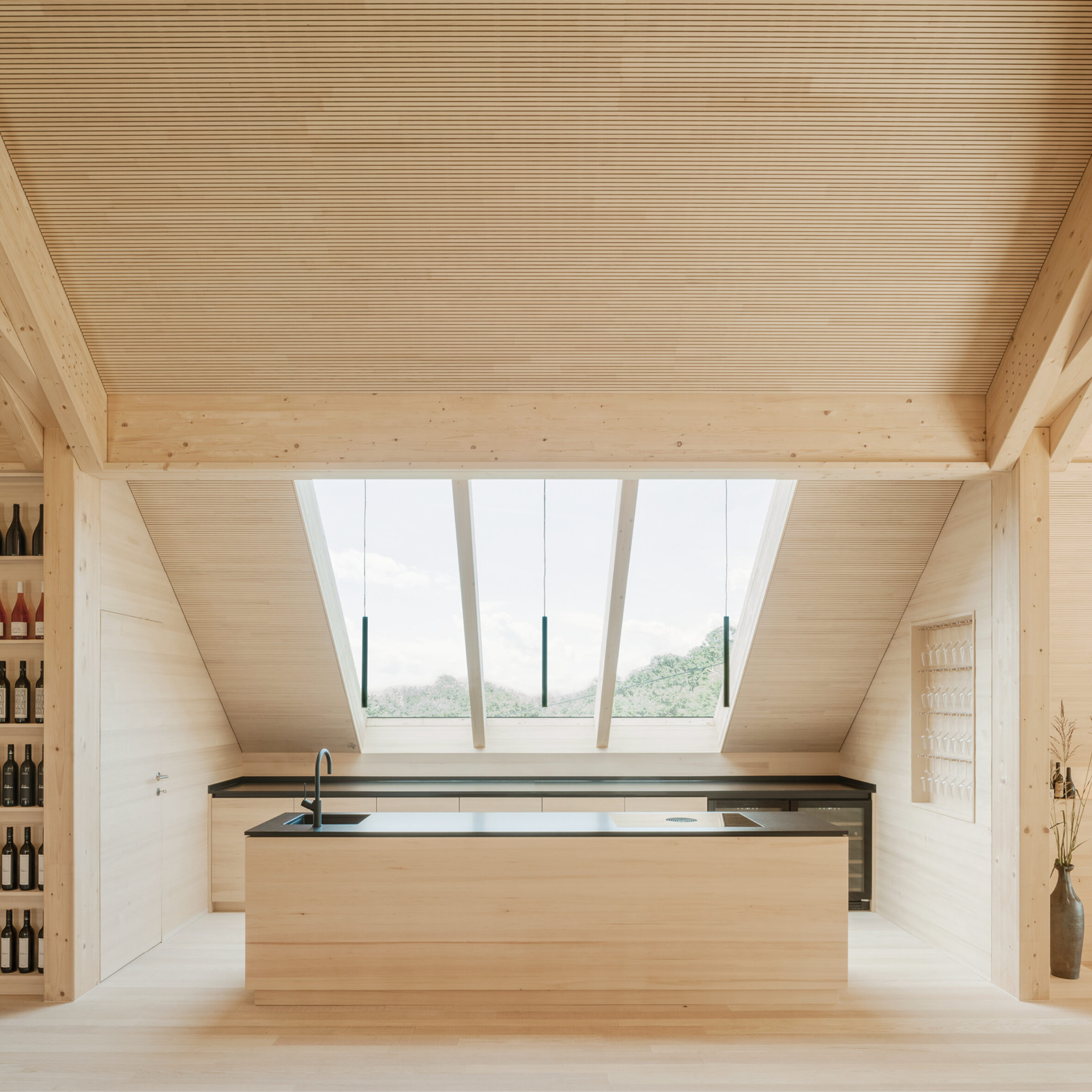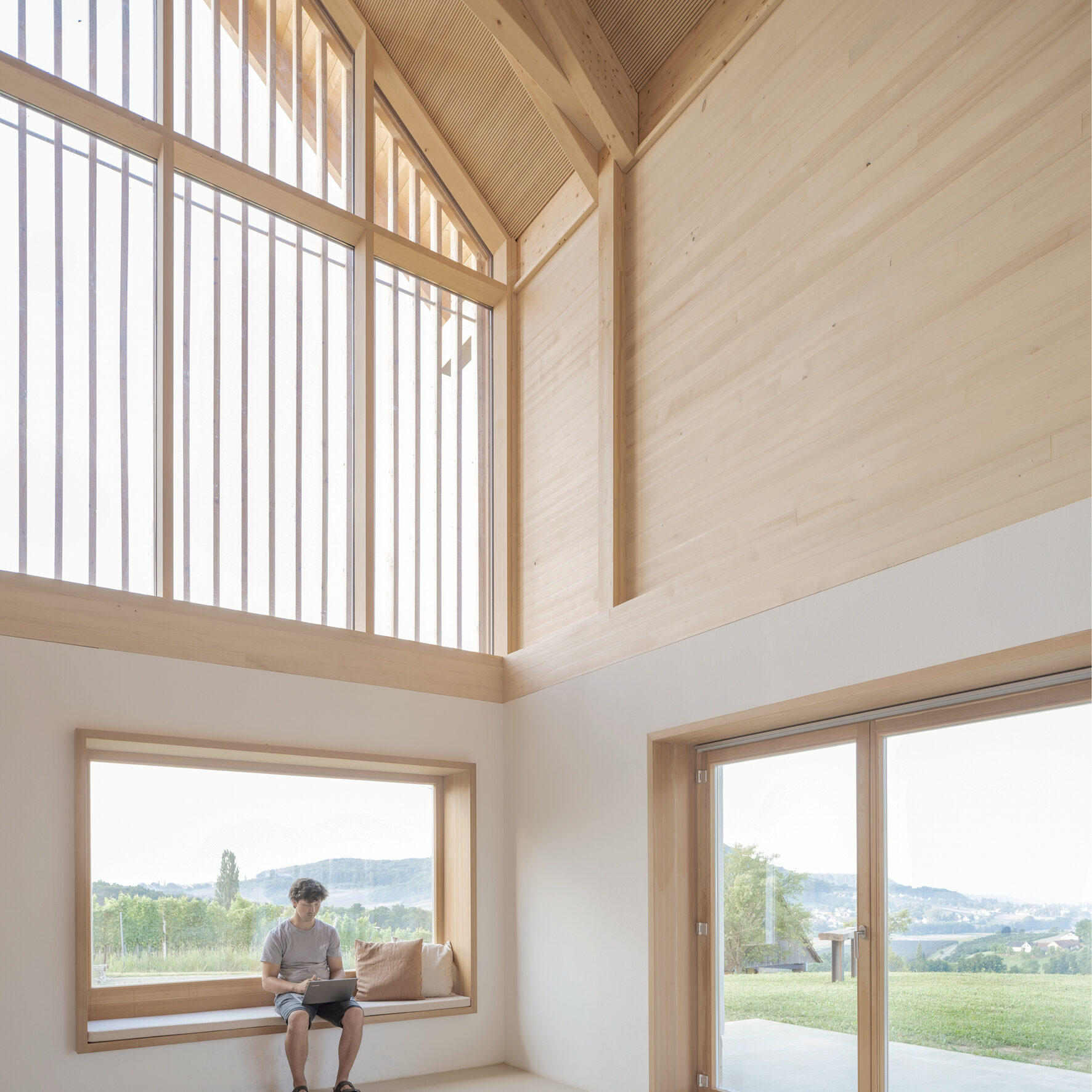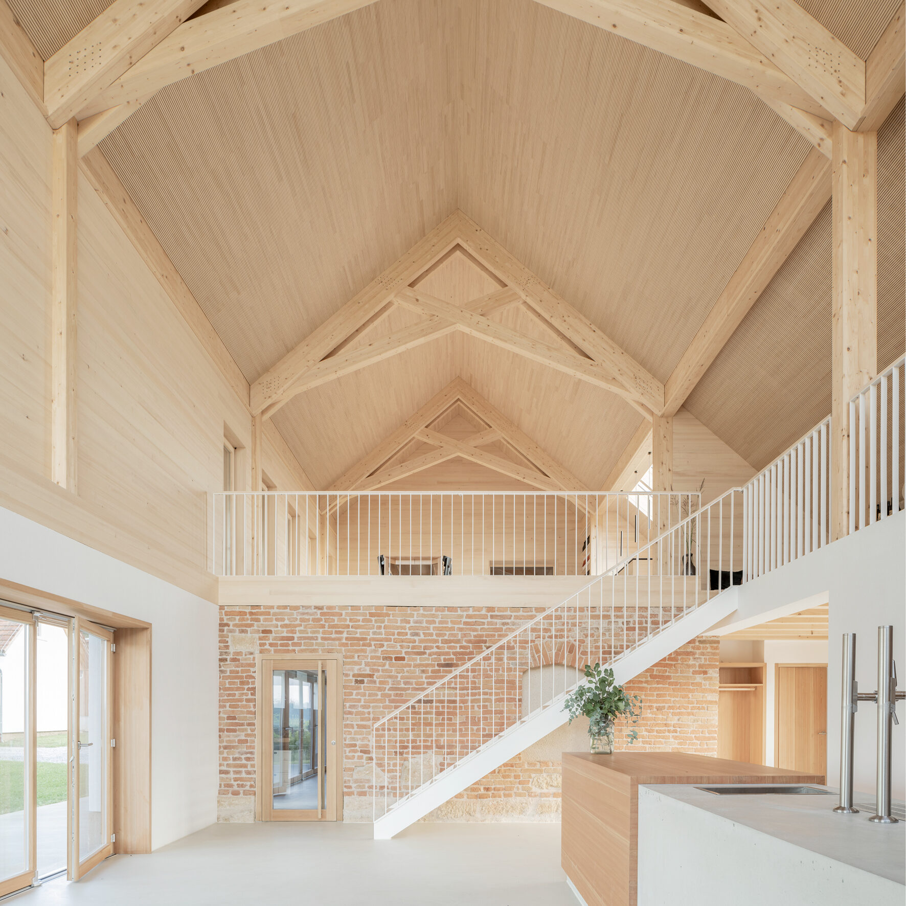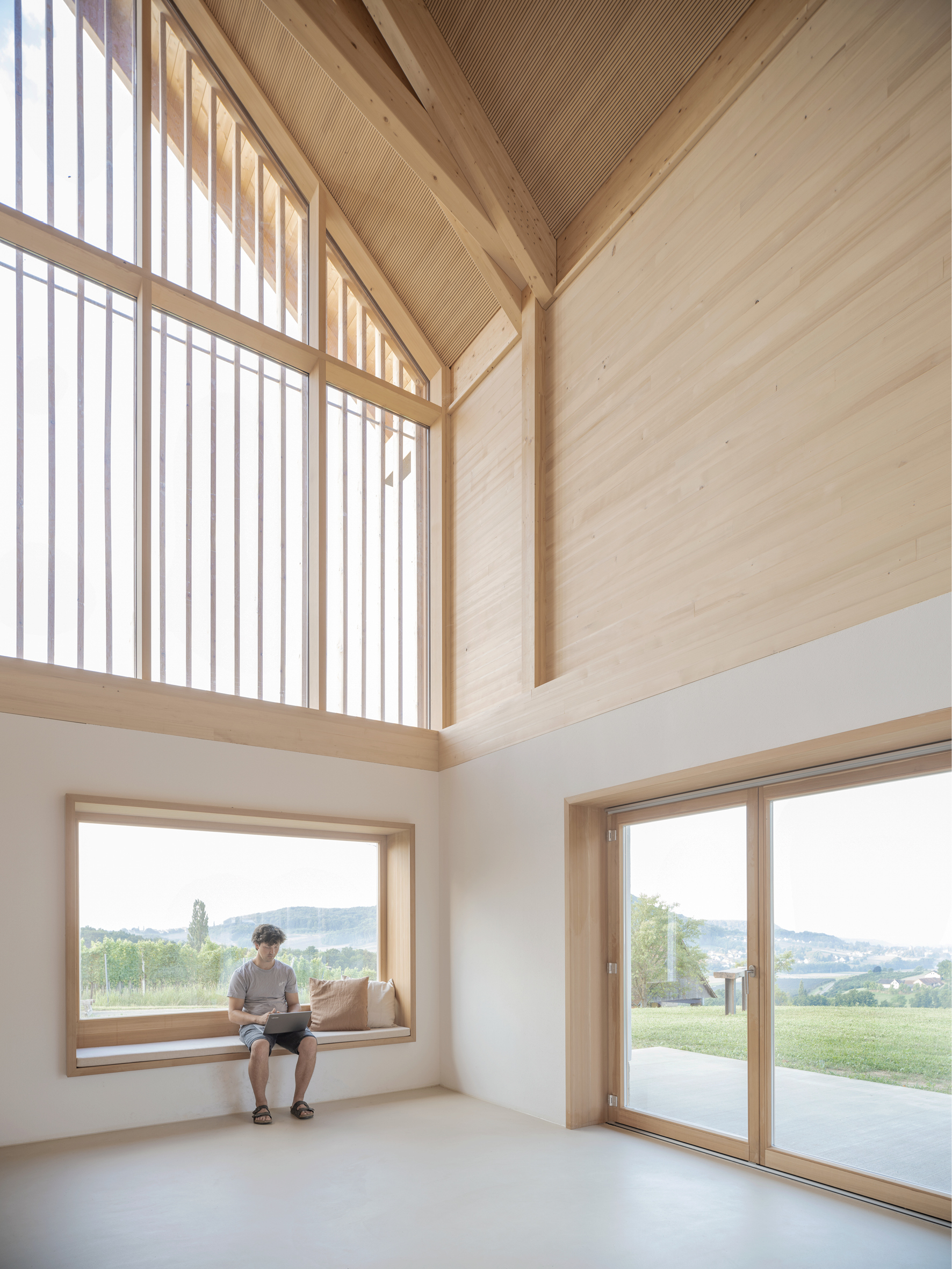 Er hat noch nie zuvor ein Bauprojekt in Auftrag gegeben. Sie hat noch nie zuvor etwas gebaut, war nicht einmal noch mit ihrem Architekturstudium fertig. Die Geschichte lehrt uns, dass dies kein Hinderungsgrund sein muss. Denn was als Zufallsbekanntschaft und wagemutiges Gedankenexperiment bei einem Abendessen in einer Berliner WG seinen Anfang an, entwickelte sich im Laufe der darauffolgenden Monate und Jahre zu einem Beispiel dafür, wie man einen teils revitalisierten, teils neu errichteten Produktionsbetrieb passgenau in die südoststeirische Landschaft hineinsetzen kann. Bauherr Lukas Jahn (29) und Architektin Mascha Ritter (28) entschieden sich, einen kleinen, intakten Teil des bestehenden Kuhstalls zu erhalten und sich bei den neuen Zu- und Anbauten an der Silhouette des bisherigen Wirtschaftsgebäudes zu orientieren. Das Resultat ist eine auf den ersten Blick symbiotische Zusammenführung aus Alt und Neu – und eine auf den zweiten Blick überaus sensible Neuinterpretation der regionalen Bautypologien und des lokalen Handwerks, die man mit Freude begutachten und einfach nur streicheln will. Im Norden des 50 Meter langen Gebäudes befindet sich die Verarbeitung samt Pressbereich und Kühlhaus, in der Mitte ist der Weinkeller mit Verkaufund Verkostungsbereich untergebracht, im südlichen Ende schließlich befindet sich die Buschenschank, für die Lukas Jahn sogar ein eigenes Gastronomiekonzept entwickelt hat: Als Begleitung zu den Weinen werden regionale Tapas serviert, wobei der Fleischanteil lediglich 30 Prozent beträgt, der Rest ist vegetarisch und vegan. Die Nachhaltigkeit bezieht sich nicht nur auf die Wein- und Speisekarte, sondern zeigt sich auch im Einsatz von Holz, in der intensiven Zusammenarbeit mit lokalen Handwerkern, im generellen Verzicht auf Kunststoffe im ganzen Haus, in der Errichtung einer unterirdischen Regenwasserzisterne für die Bewässerung der Weinreben sowie im wunderschönen zimmermannsmäßigen Dachstuhl mit seinen Hunderten Stabdübeln. „Wir haben sogar ein aufgeklapptes Vordach errichtet, wie man das früher gemacht hat, und einen Grean gebaut“, sagt Lukas Jahn. Und erklärt, dass der Grean traditionell den betonierten Vorplatz auf der Südseite des Wirtschaftshofs bezeichnet. Anekdotenreiche Details wie diese gibt es viele zu entdecken. Bauherr und Architektin waren ein Dream Team und haben mit ihrem Erstlingswerk bewiesen, dass man auch mit wenig Praxiserfahrung einen Beitrag zur Regionalität leisten und Baukultur auf höchstem Niveau leben kann.